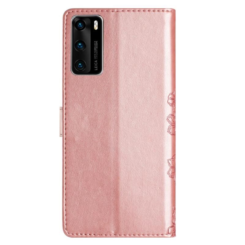 Θήκη τηλεφώνου Huawei P40 Cherry Blossom Butterfly με ανάγλυφη υφή PU (Κόκκινο)