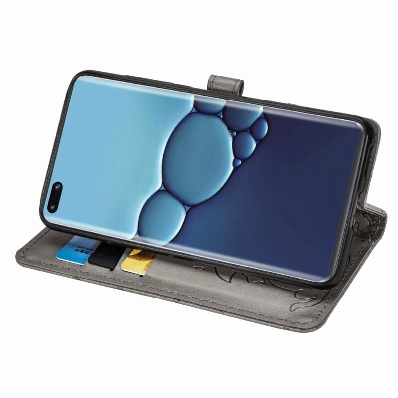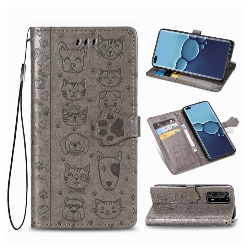 Θήκη δέρματος οριζόντιας αναδίπλωσης για Huawei P40 με χαριτωμένα ανάγλυφα σχέδια γάτας και σκύλου, με βάση / υποδοχή κάρτας / πορτοφόλι / κορδόνι (Γκρι)