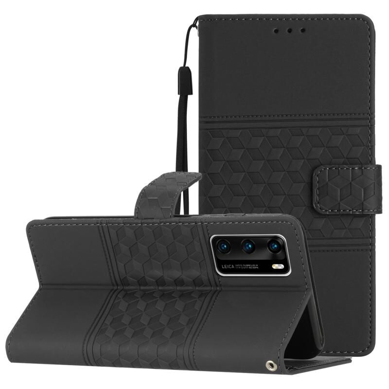 Για Huawei P40 Diamond ανάγλυφο δέρμα αίσθηση δέρμα τηλέφωνο υπόθεση με κορδόνι (μαύρο)