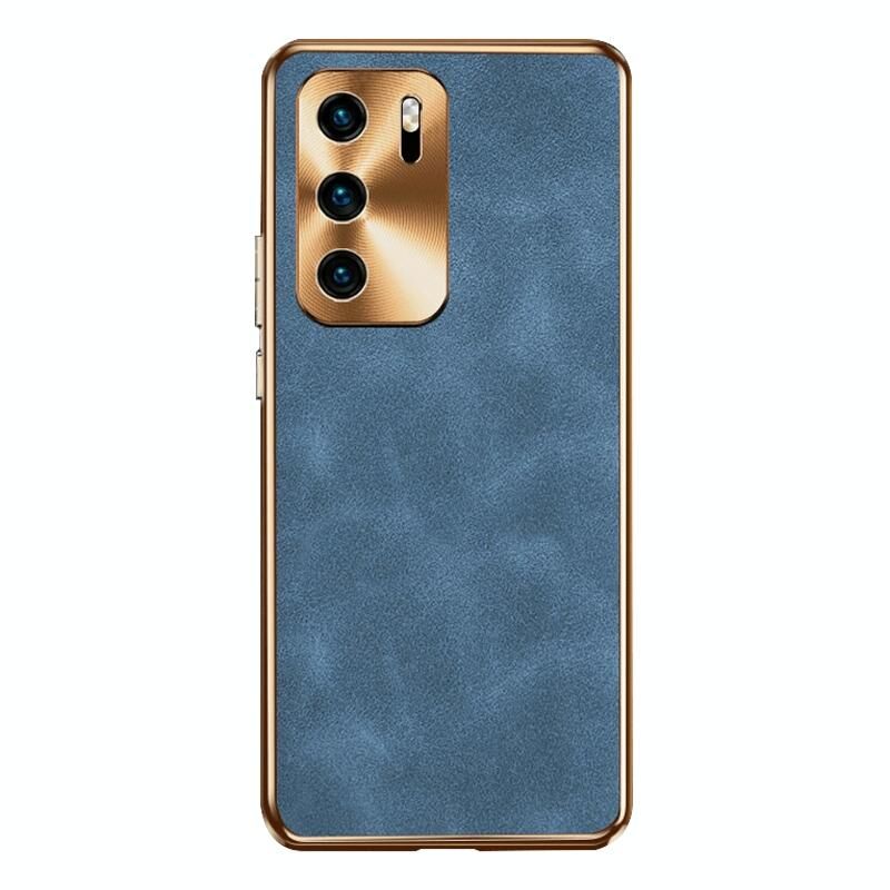 Για Huawei P40 Electroplating Lambskin δέρμα τηλέφωνο υπόθεση (μπλε)