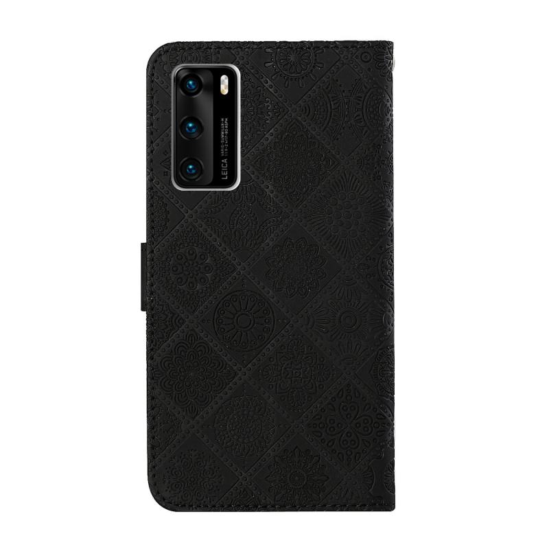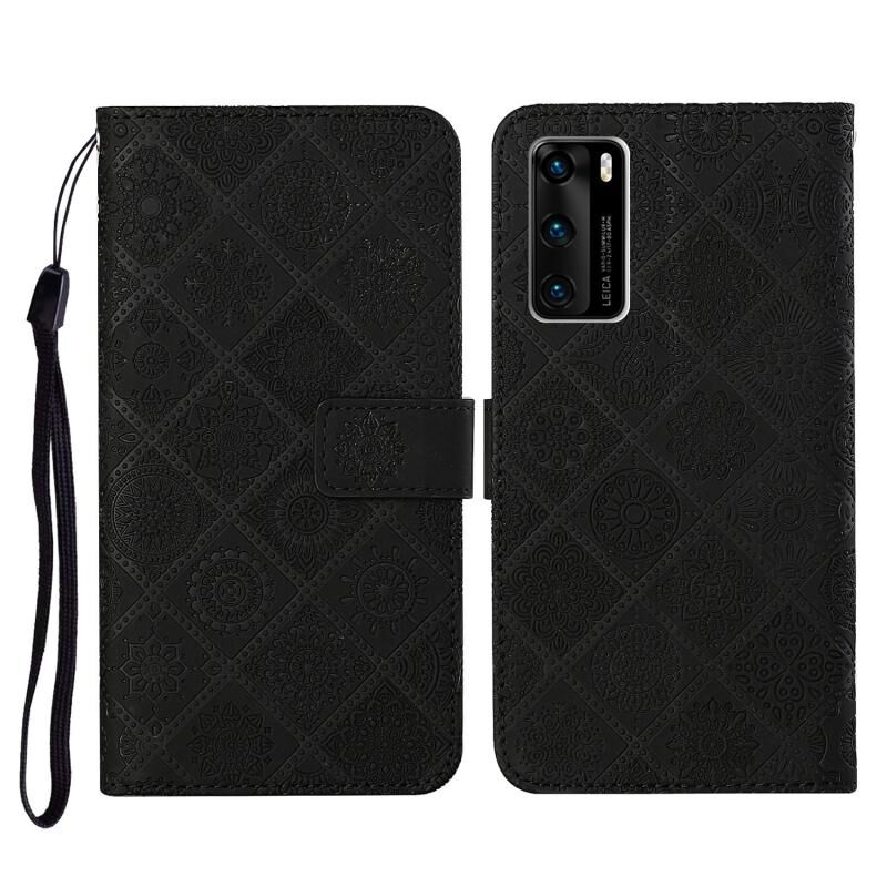 For Huawei P40 Ethnic Style Embossed Pattern Horizontal Flip Leather Case with Holder & Card Slots & Wallet & Lanyard(Black)