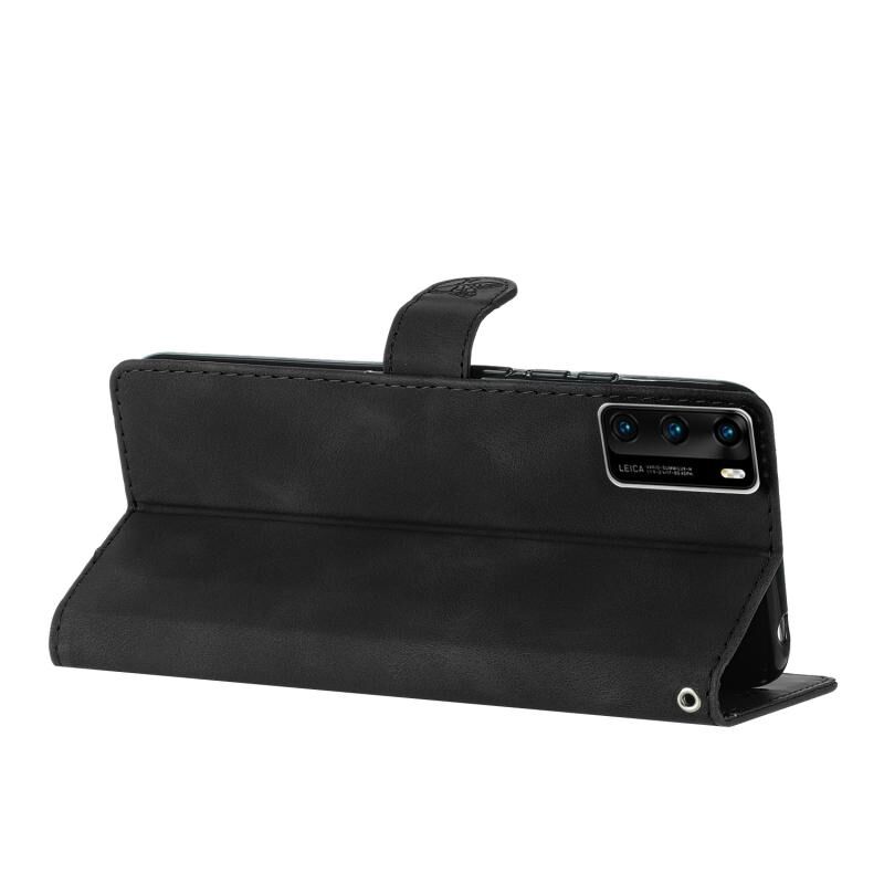 Για Huawei P40 λουλούδι πεταλούδα ανάγλυφο μοτίβο δερμάτινη θήκη τηλεφώνου (μαύρο)