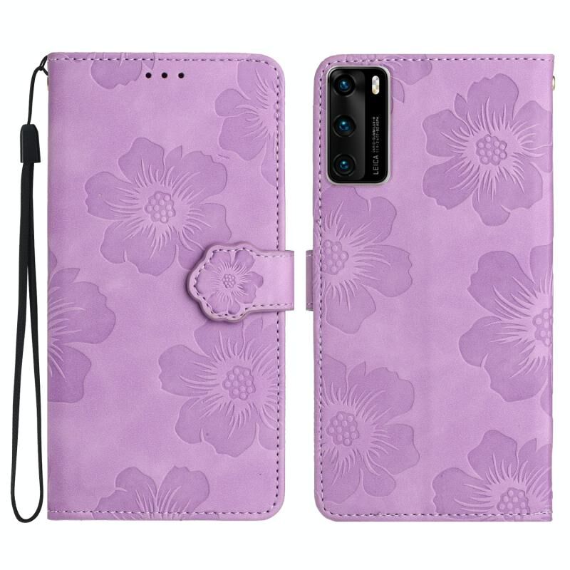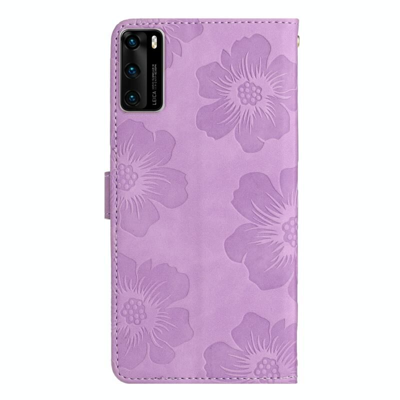 Για Huawei P40 λουλούδι ανάγλυφο μοτίβο δερμάτινη θήκη τηλεφώνου (Μωβ)