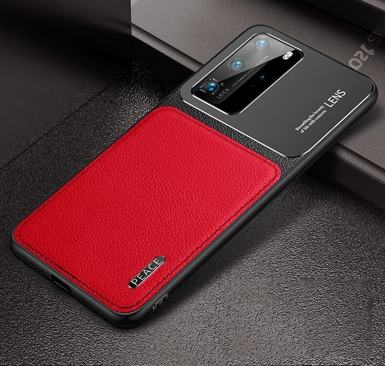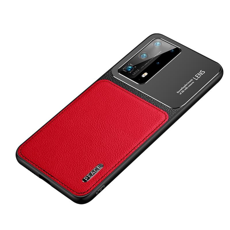 For Huawei P40 Frosted Metal + Leather Texture Protective Case (Red)