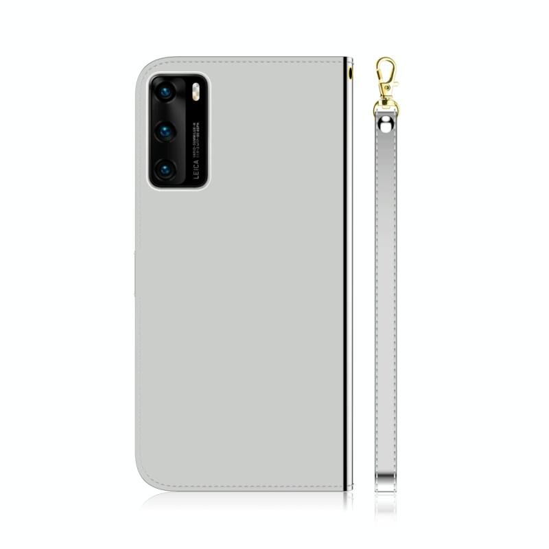 Για Huawei P40 Απομιμητική επιφάνεια καθρέφτη Οριζόντια Flip δερμάτινη θήκη με θήκη & υποδοχές καρτών & πορτοφόλι & κορδόνι (Ασημί)