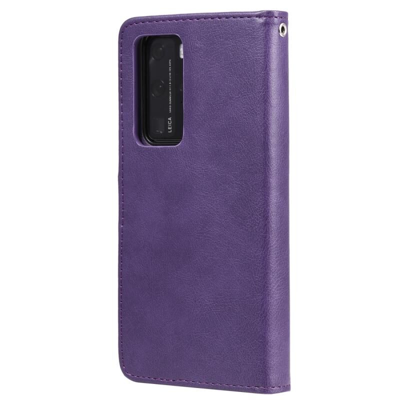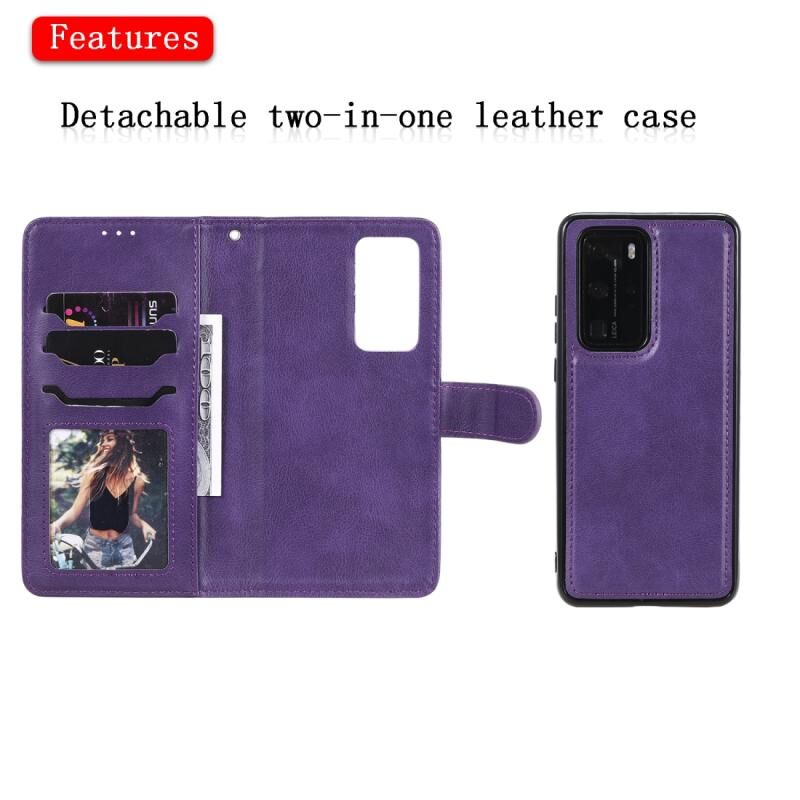 Για Huawei P40 Lite 2 σε 1 Αμιγές χρώμα Αποσπώμενη PU δερμάτινη θήκη με υποδοχές καρτών & μαγνητική θήκη & πλαίσιο φωτογραφιών & πορτοφόλι & λουράκι (μωβ)