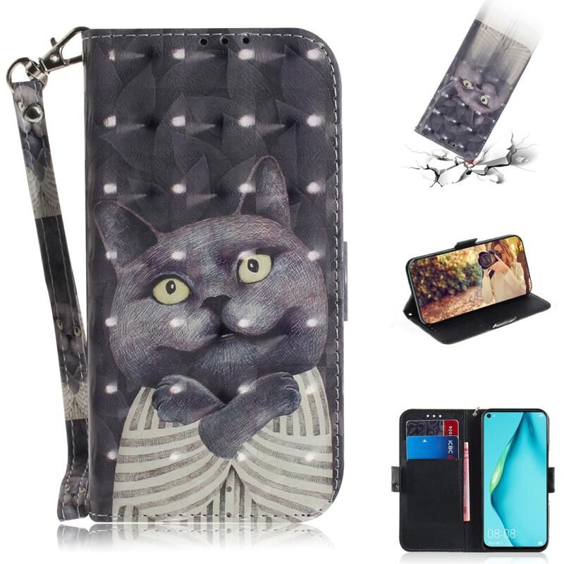 Θήκη δέρματος Huawei P40 lite 3D ζωγραφικής, οριζόντια αναδίπλωση με βάση στήριξης & θήκη καρτών & πορτοφόλι & κορδόνι (Αγκαλιάστε τη γάτα)