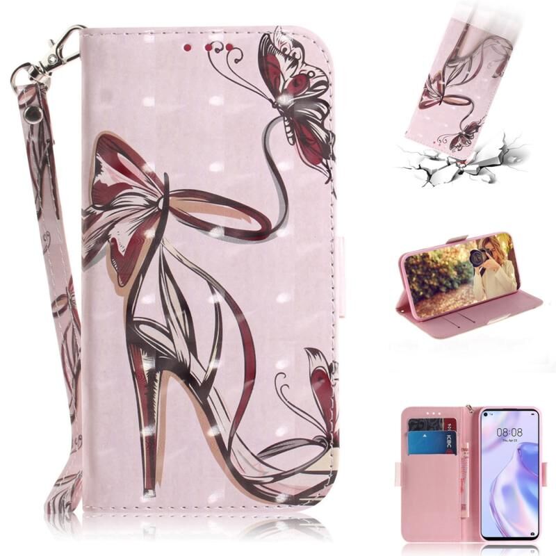 Θήκη δέρματος οριζόντιας αναδίπλωσης με μαγνητική έλξη και τρισδιάστατο σχέδιο για Huawei P40 lite 5G, με βάση στήριξης, θήκη για κάρτες, πορτοφόλι και κορδόνι (Πέταλο με ψηλοτάκουνα παπούτσια).