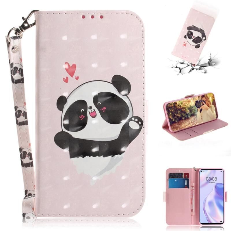 Θήκη δέρματος οριζόντιας αναδίπλωσης με μαγνητική έλξη και τρισδιάστατο σχέδιο για Huawei P40 lite 5G, με βάση στήριξης, θήκη για κάρτες, πορτοφόλι και κορδόνι (Αρκουδάκι με καρδιά)
