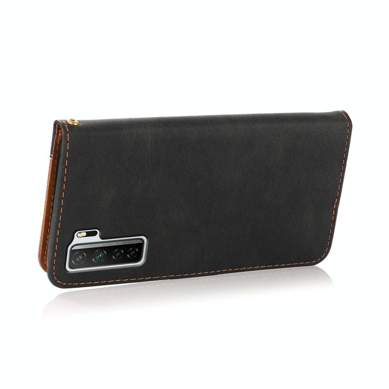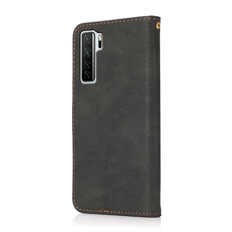 Θήκη τηλεφώνου από δέρμα με διχρωμία ραφής για Huawei P40 lite 5G (Καφέ Κόκκινο)