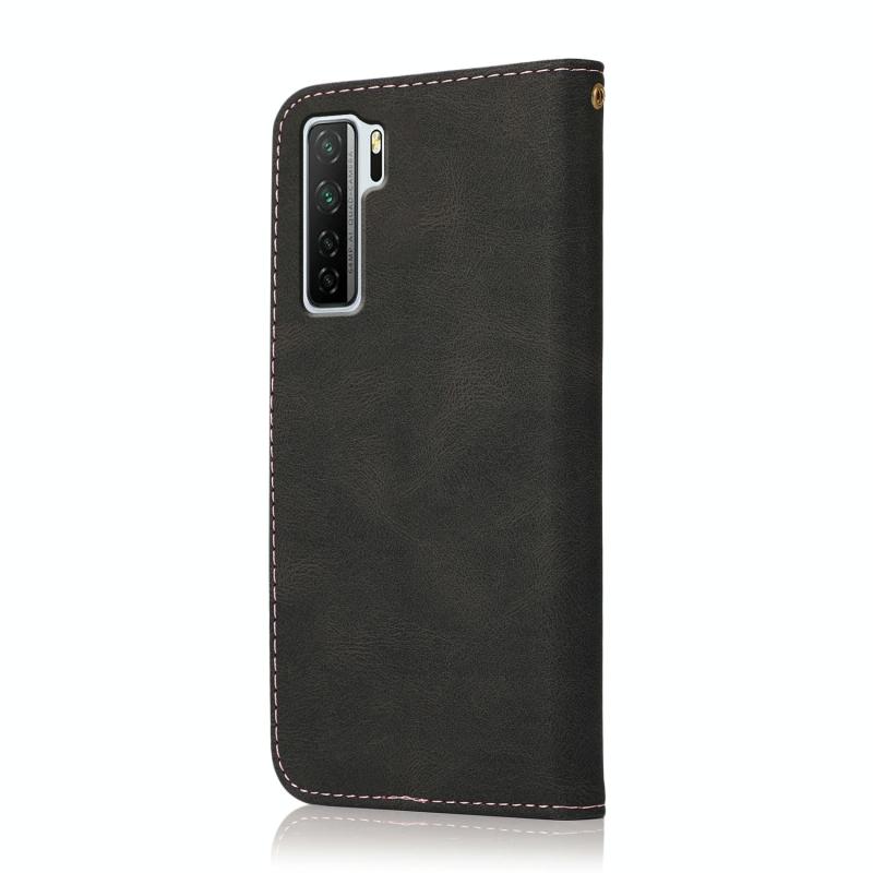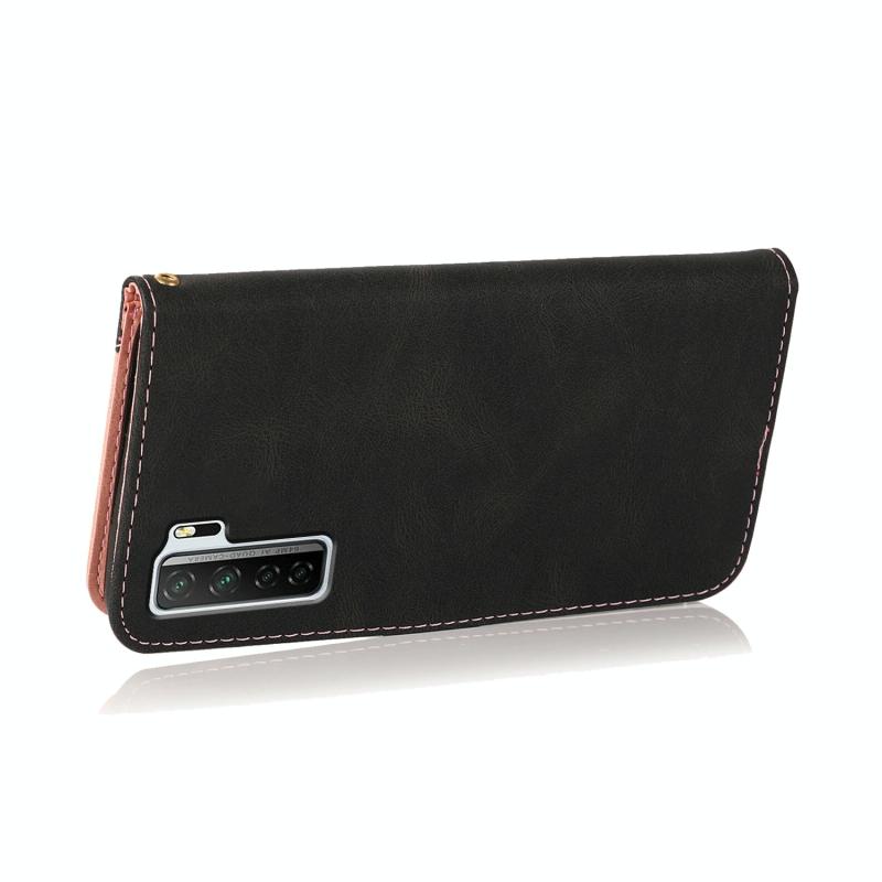 Θήκη τηλεφώνου από δέρμα με διχρωμία ραφής για Huawei P40 lite 5G (Καφέ Κόκκινο)
