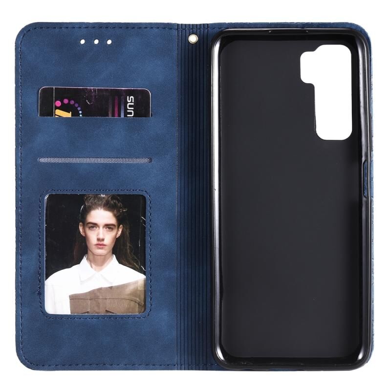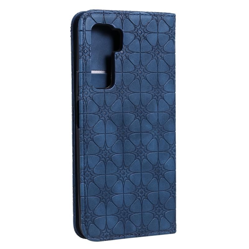 Θήκη δέρματος με μαγνητικό κλείσιμο, οριζόντια, με ανάγλυφο σχέδιο τυχερών λουλουδιών και θήκη/υποδοχές για κάρτες, για Huawei P40 Lite 5G / nova 7 SE (Σκούρο μπλε)