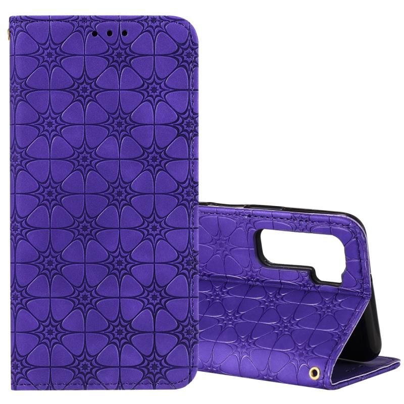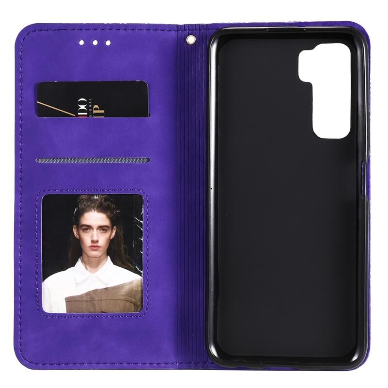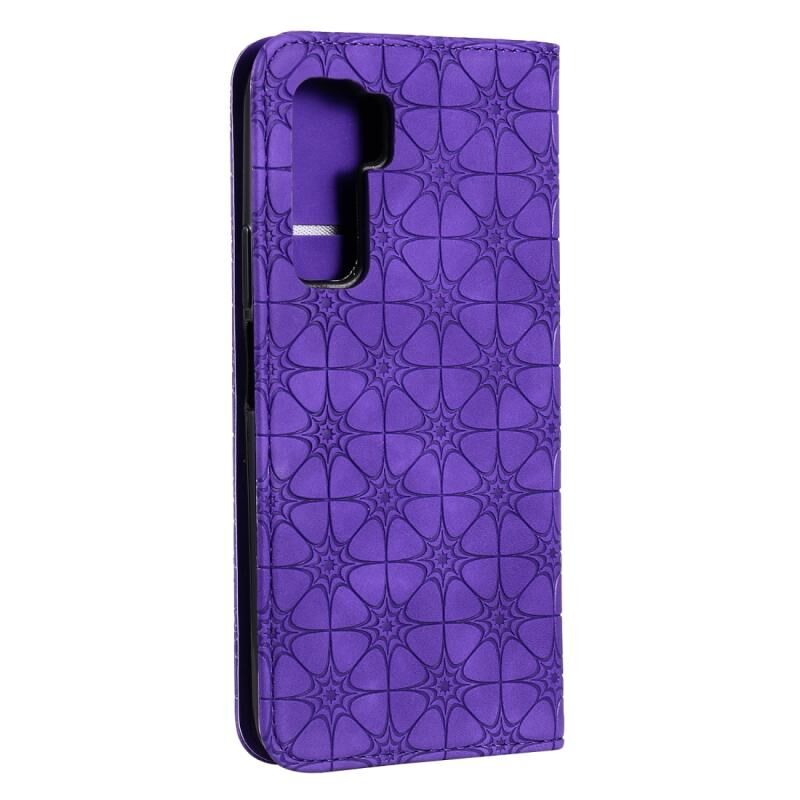 Θήκη δέρματος με μαγνητικό κλείσιμο, οριζόντια, με ανάγλυφο σχέδιο τυχερών λουλουδιών και θήκη/υποδοχές για κάρτες, για Huawei P40 Lite 5G / nova 7 SE (Μωβ)