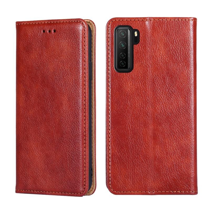 Για Huawei P40 lite 5G PU + TPU Gloss Oil Solid Color Μαγνητική οριζόντια Flip δερμάτινη θήκη με υποδοχή & υποδοχή κάρτας & πορτοφόλι (καφέ)