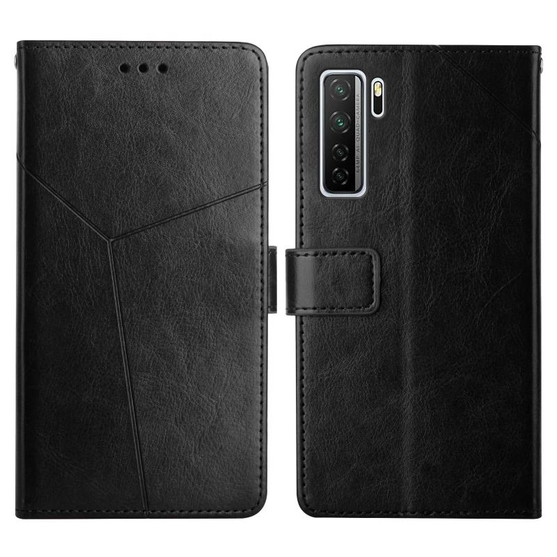 For Huawei P40 Lite 5G Y Stitching Horizontal Flip Leather Phone Case with Holder & Card Slots & Wallet & Photo Frame(Black)