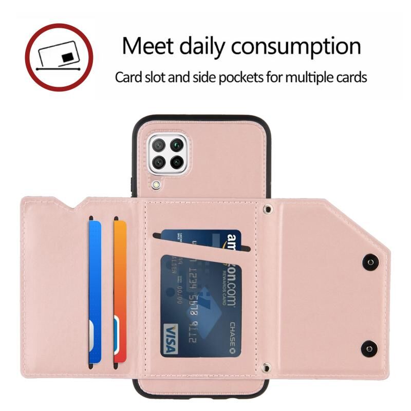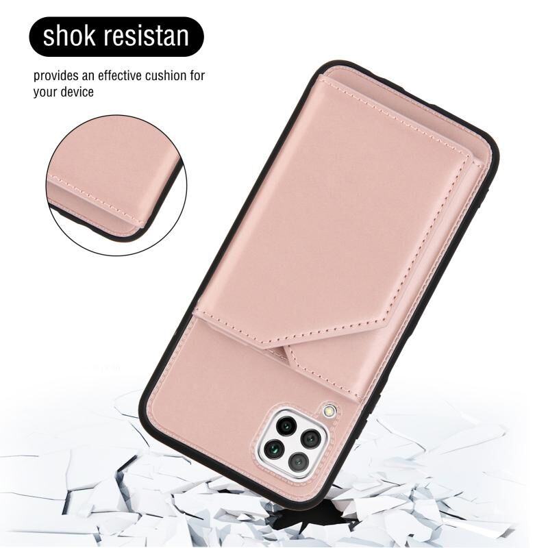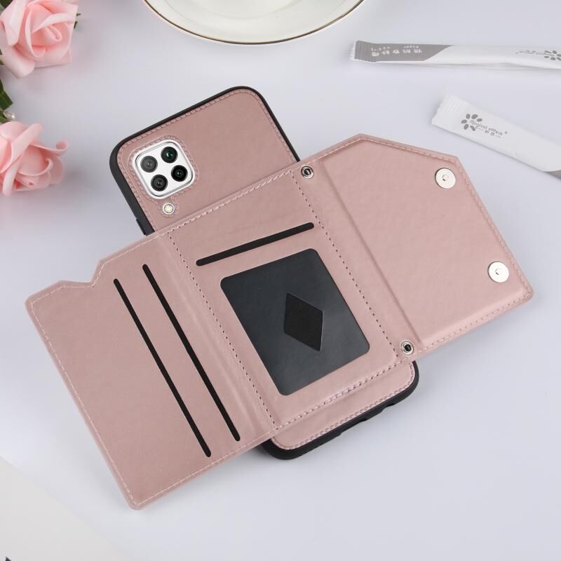 Για το Huawei P40 Lite & Nova 6 SE Skin Feel PU + TPU + PC Back Cover Shockproof Case με υποδοχές καρτών & Holder & Photo Frame (Rose Gold)