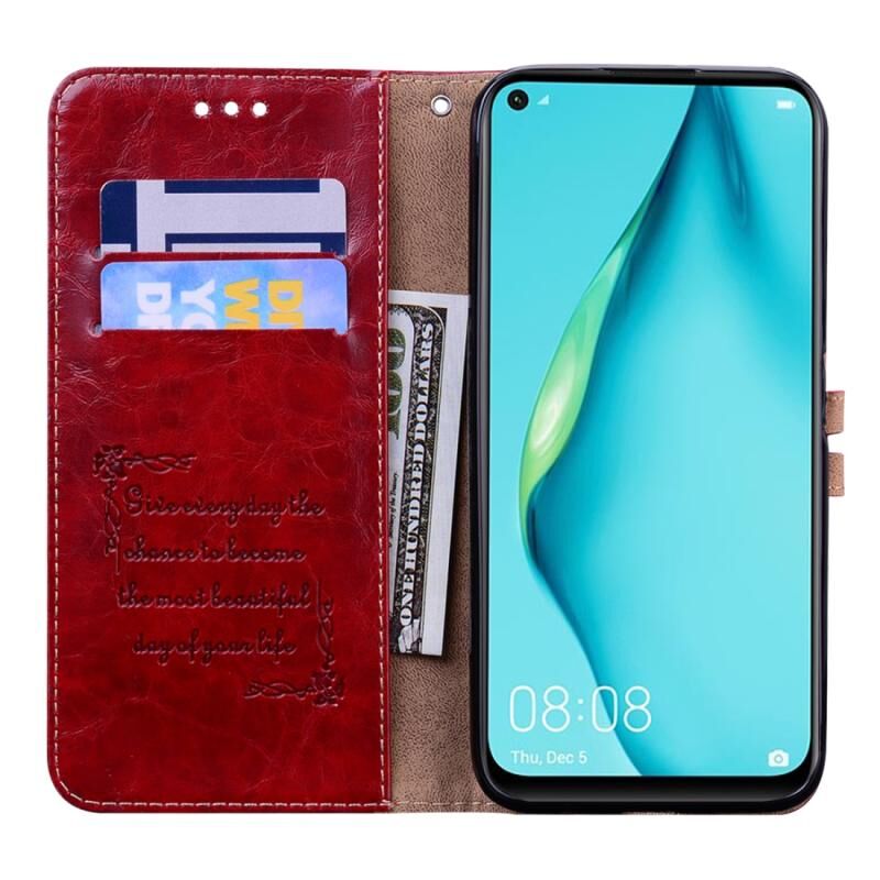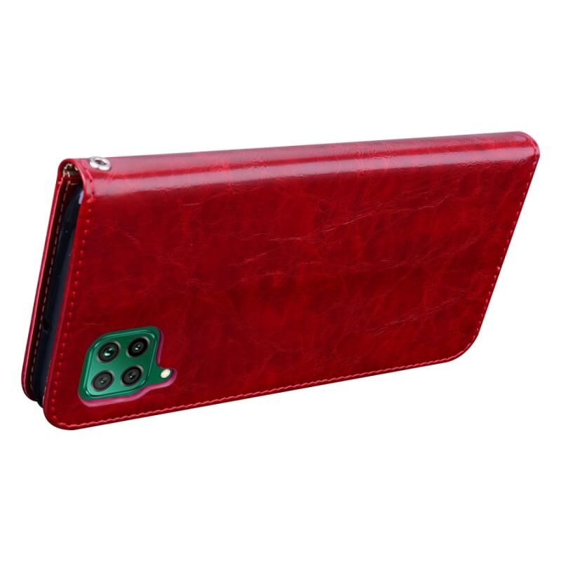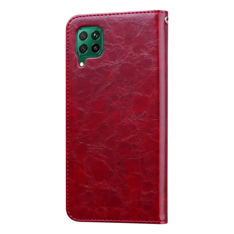 Για Huawei P40 Lite Business Style Oil Wax Texture Οριζόντια Flip δερμάτινη θήκη, με θήκη & υποδοχές καρτών & πορτοφόλι (κόκκινο)