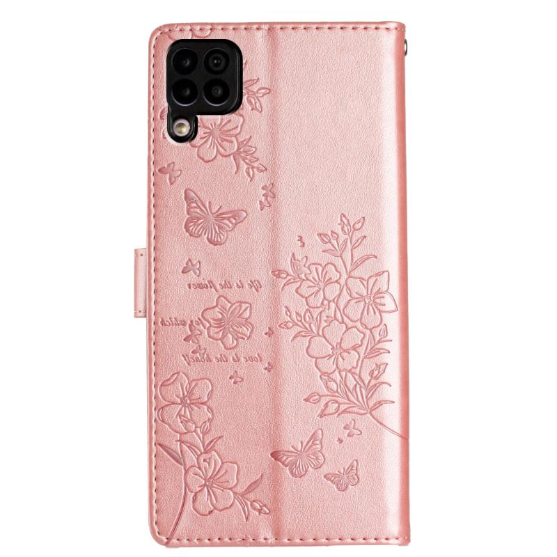 For Huawei P40 lite Butterflies And Flowers Leather Phone Case(Rose Gold)