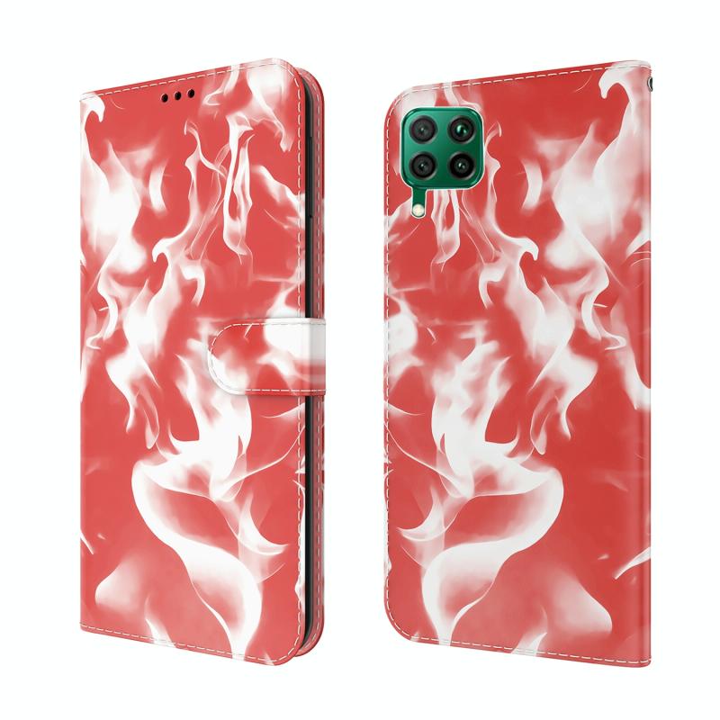 For Huawei P40 Lite Cloud Fog Pattern Horizontal Flip Leather Case with Holder & Card Slot & Wallet(Red)