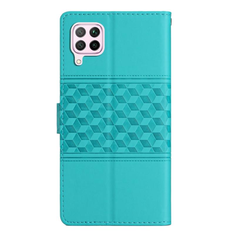 Θήκη τηλεφώνου Huawei P40 Lite με δερμάτινη υφή διαμαντένιας ανάγλυφης όψης και κορδόνι (Μπλε)
