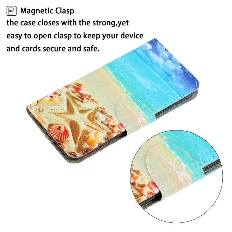 Θήκη δέρματος οριζόντιας αναδίπλωσης με σχέδια και χρώματα για Huawei P40 Lite E με βάση στήριξης & υποδοχή κάρτας & πορτοφόλι (Πεντάγραμμα)