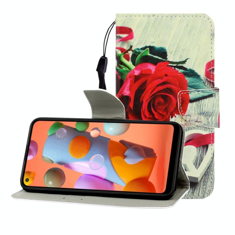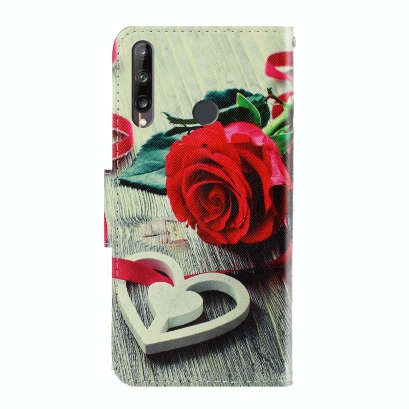Θήκη δέρματος οριζόντιας αναδίπλωσης με σχέδιο και χρώματα για Huawei P40 Lite E με βάση στήριξης & υποδοχή κάρτας & πορτοφόλι (Κόκκινο Ρόδο)