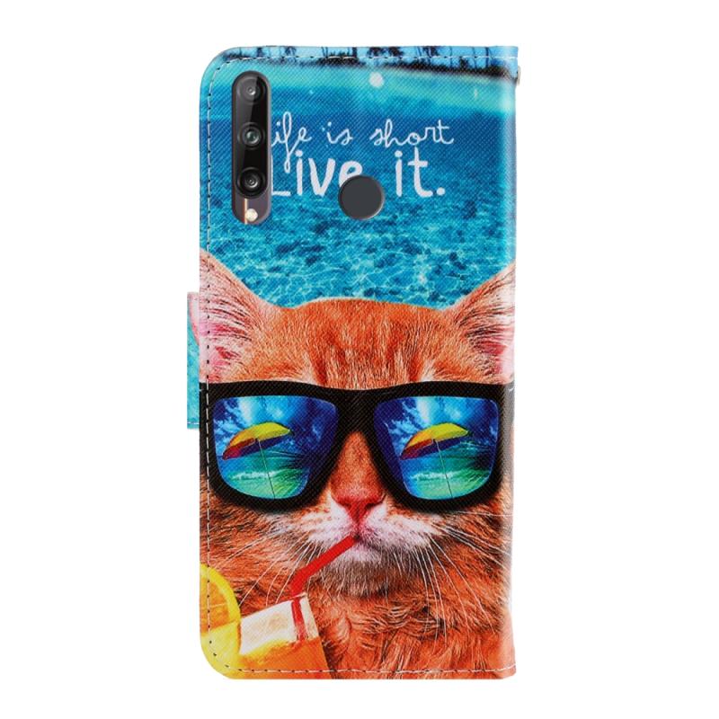 Θήκη δέρματος οριζόντιας αναδίπλωσης με σχέδιο (υποβρύχιο γατάκι) για Huawei P40 Lite E, με βάση στήριξης, θήκη για κάρτες και πορτοφόλι. (Κόκκινο)