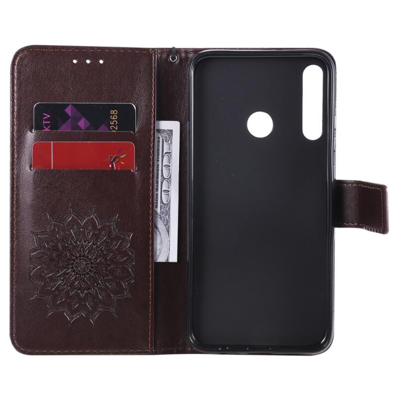 Για Huawei P40 Lite E/Y7p/Honor 9C Ανάγλυφο ηλιοτρόπιο μοτίβο οριζόντια Flip PU δέρμα υπόθεση με κάτοχο & υποδοχές καρτών & πορτοφόλι & Lanyard (καφέ)