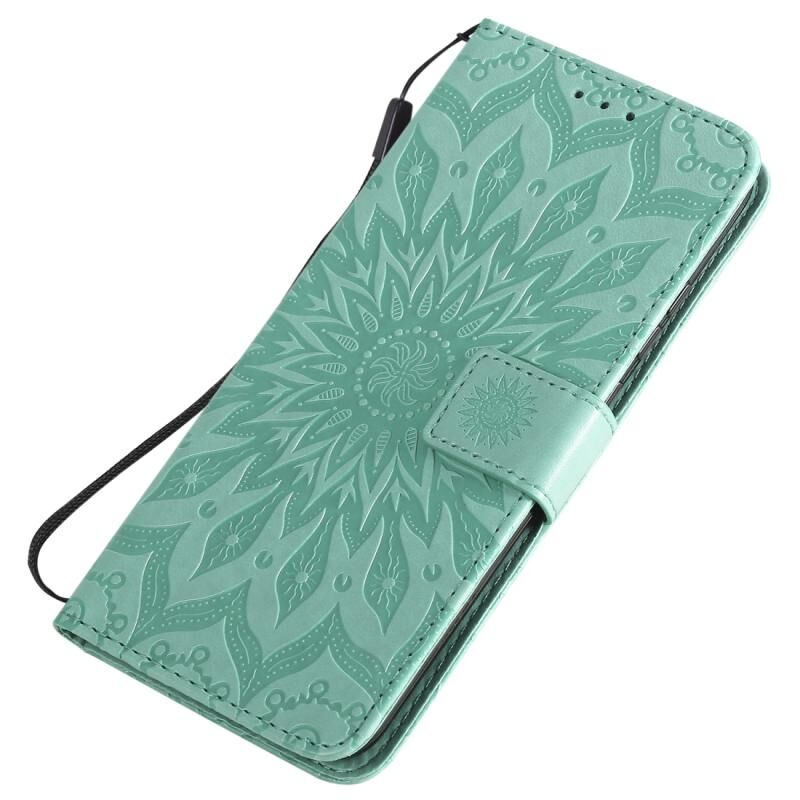 Για Huawei P40 Lite E/Y7p/Honor 9C Ανάγλυφο ηλιοτρόπιο μοτίβο οριζόντια Flip PU δέρμα υπόθεση με κάτοχο & υποδοχές καρτών & πορτοφόλι & Lanyard (πράσινο)