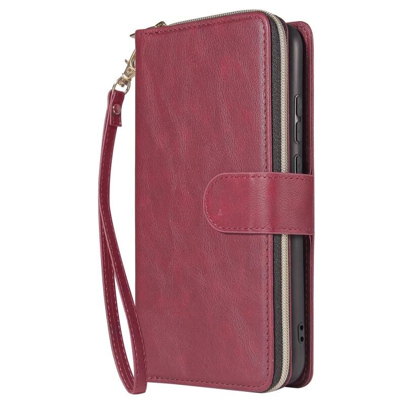 Για Huawei P40 Lite E φερμουάρ τσάντα πορτοφόλι οριζόντια Flip PU δερμάτινη θήκη με κάτοχο & 9 υποδοχές για κάρτες & πορτοφόλι & κορδόνι & κορνίζα & κορνίζα φωτογραφιών (κόκκινο κρασί)