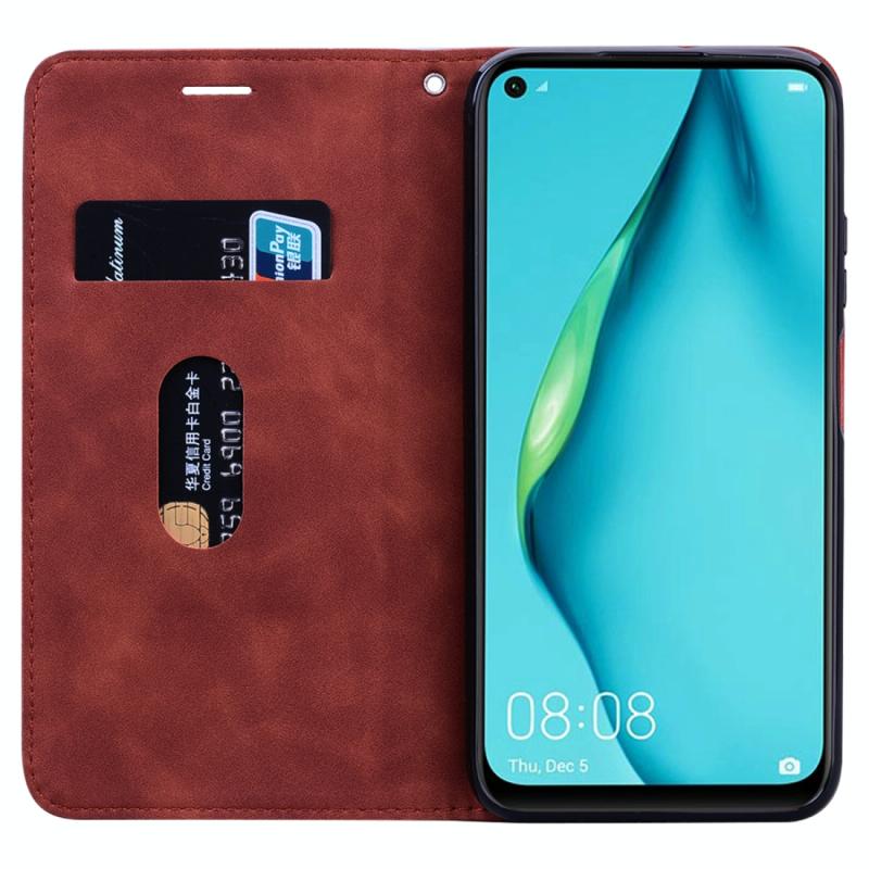 Θήκη Huawei P40 Lite Ματ Επιχειρηματική Μαγνητική Οριζόντια Δερμάτινη PU με Στήριξη & Θήκη Καρτών & Λουρί (Καφέ)