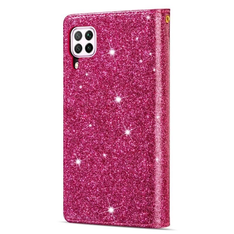 Θήκη Huawei P40 lite με πολλαπλές υποδοχές καρτών, γυαλιστερό σχέδιο με λέιζερ αστρικού ουρανού, οριζόντια δερμάτινη θήκη με φερμουάρ, βάση στήριξης, πορτοφόλι & λουρί (Μαύρο)