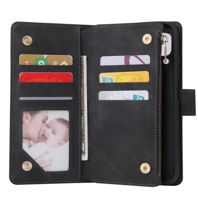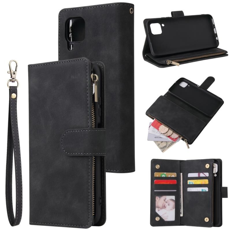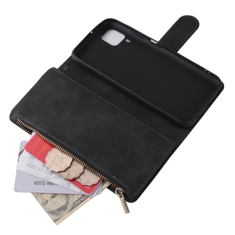 Για Huawei P40 Lite Πολυλειτουργική οριζόντια Flip δερμάτινη θήκη, με υποδοχή κάρτας & υποδοχή & φερμουάρ πορτοφόλι & πλαίσιο φωτογραφιών (μαύρο)