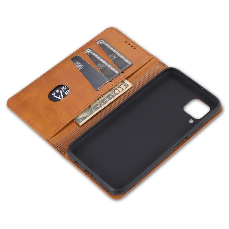 Θήκη δέρματος οριζόντιας αναδίπλωσης με μαγνητικό κλείσιμο και υφή μοσχαριού για Huawei P40 Lite / nova 6 SE AZNS, με θήκες για κάρτες, στήριξη και λειτουργία πορτοφολιού (Ανοιχτό Καφέ) (AZNS)