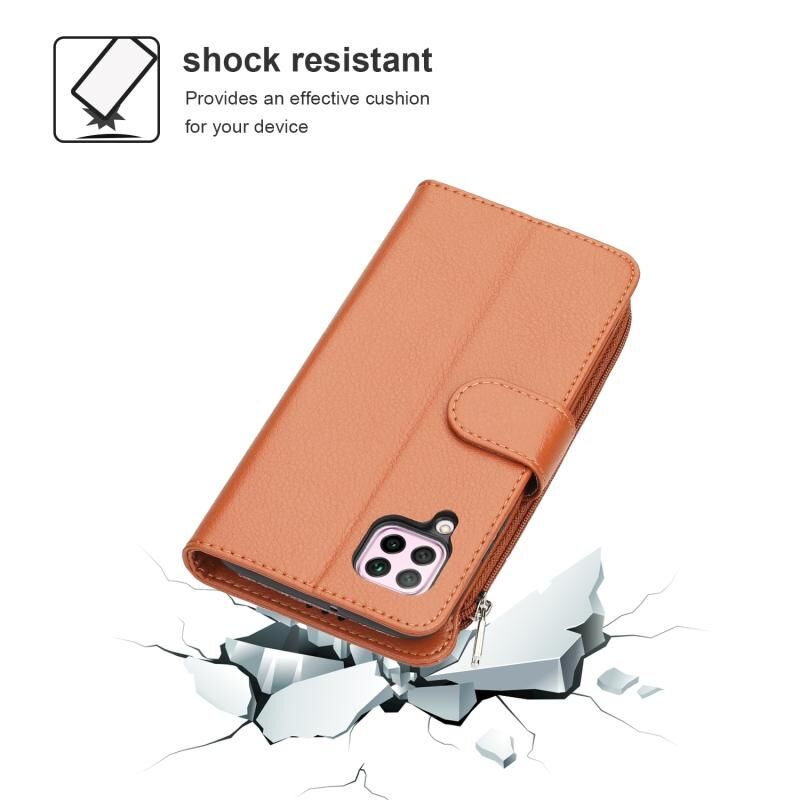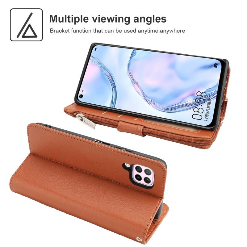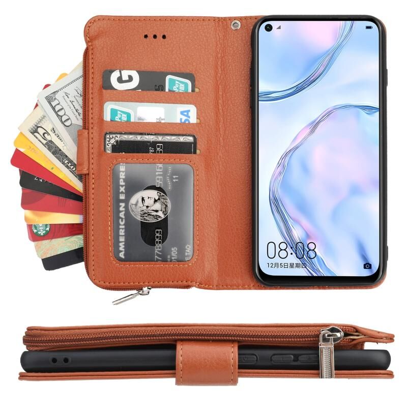 Για Huawei P40 Lite / nova 6 SE Microfiber φερμουάρ οριζόντια Flip δερμάτινη θήκη (Καφέ)
