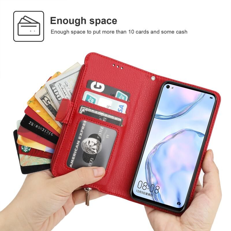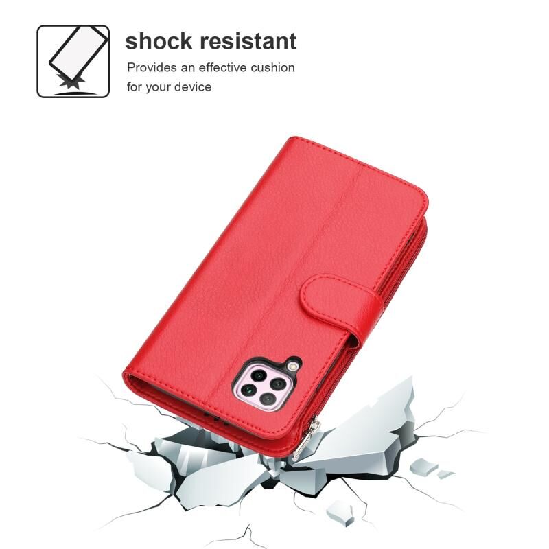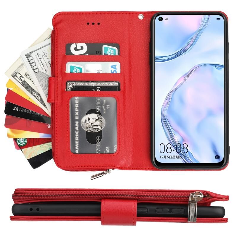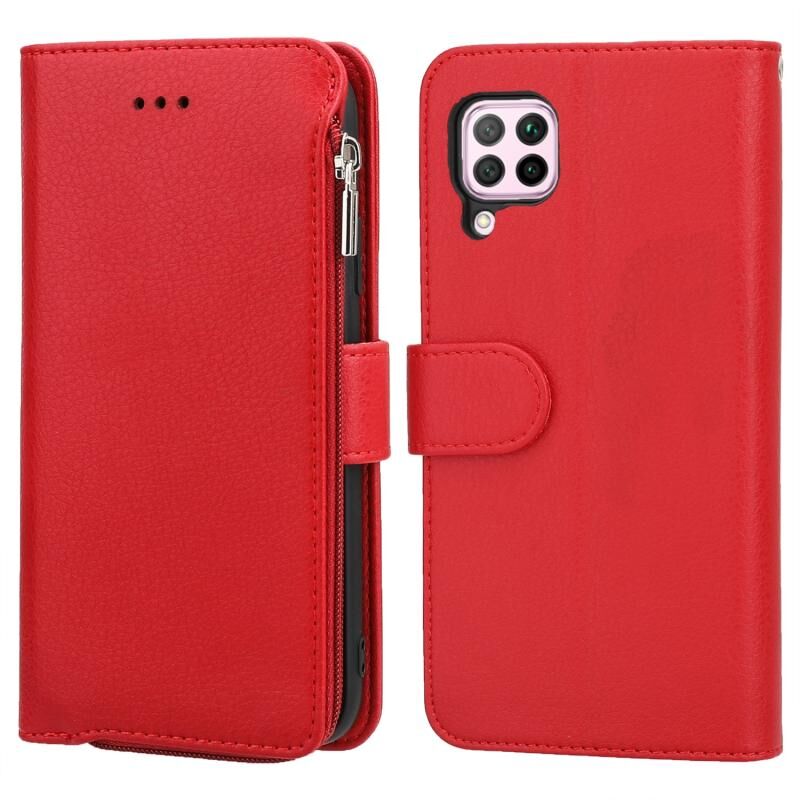 Για Huawei P40 Lite / nova 6 SE Microfiber φερμουάρ οριζόντια Flip δερμάτινη θήκη (κόκκινο)