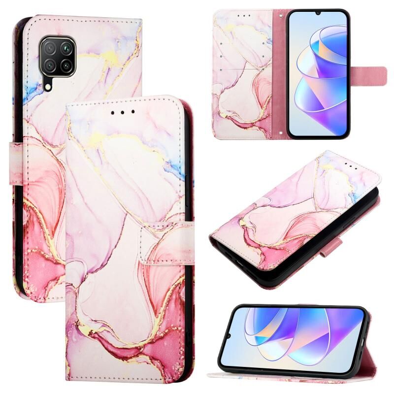 Θήκη τηλεφώνου Huawei P40 lite / nova 6 SE PT003 με σχέδιο μαρμάρου, δερμάτινη, αναδιπλούμενη (Λευκό-Μωβ)