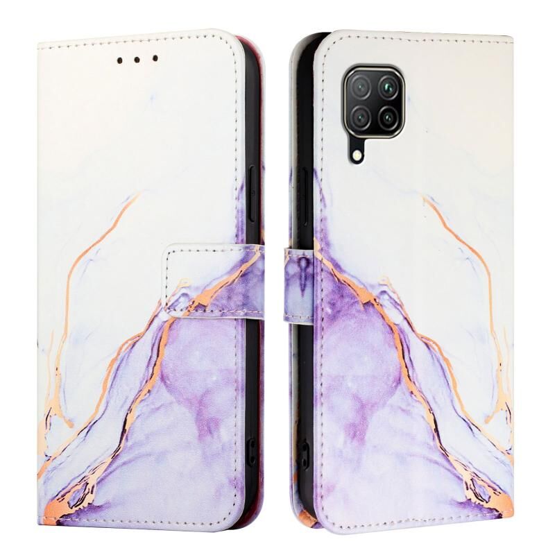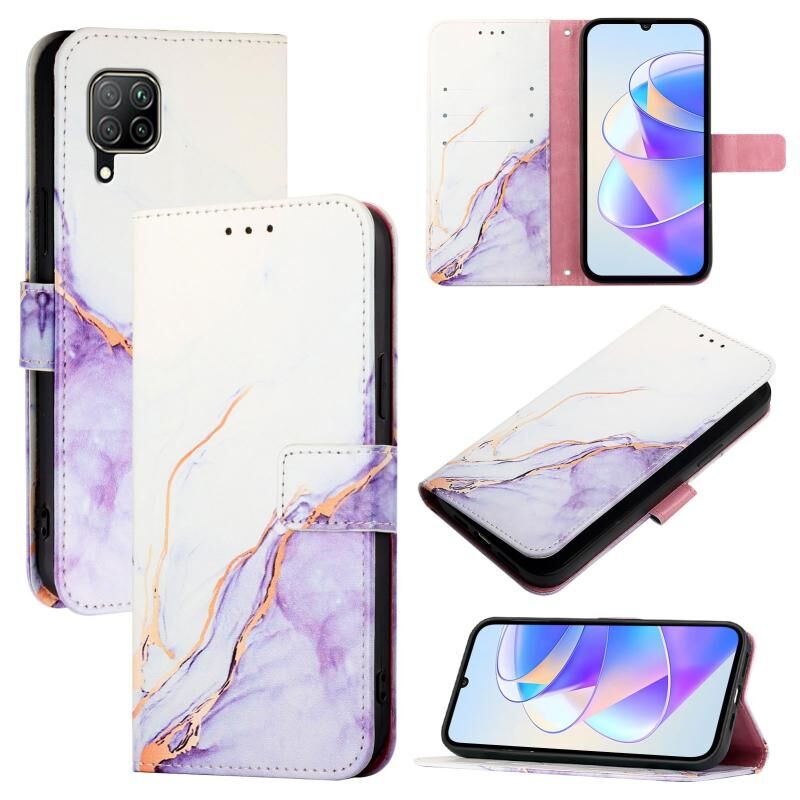 Θήκη τηλεφώνου Huawei P40 lite / nova 6 SE PT003 με σχέδιο μαρμάρου, δερμάτινη, αναδιπλούμενη (Λευκό-Μωβ)