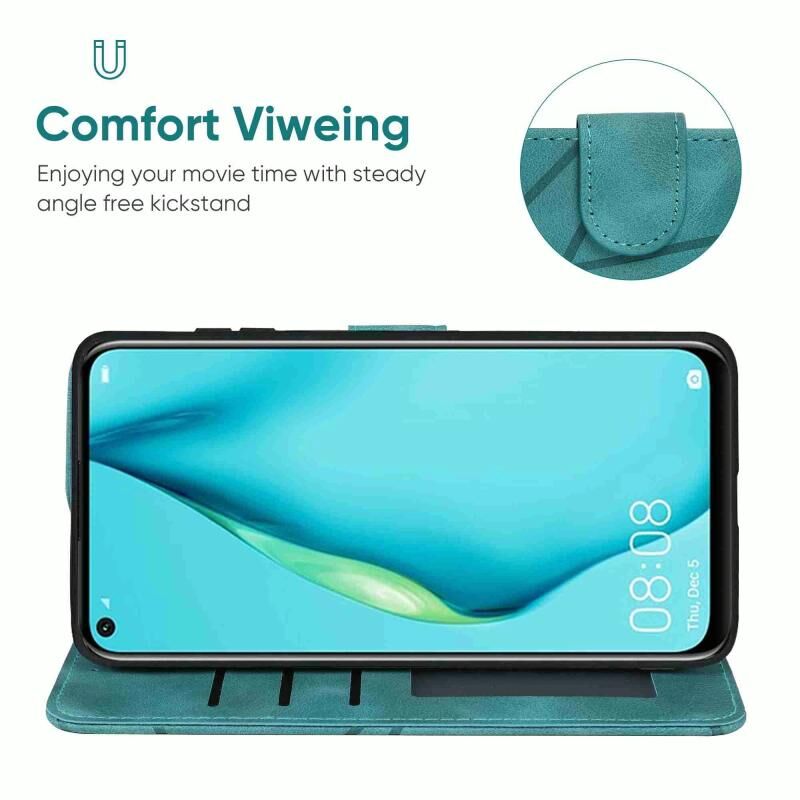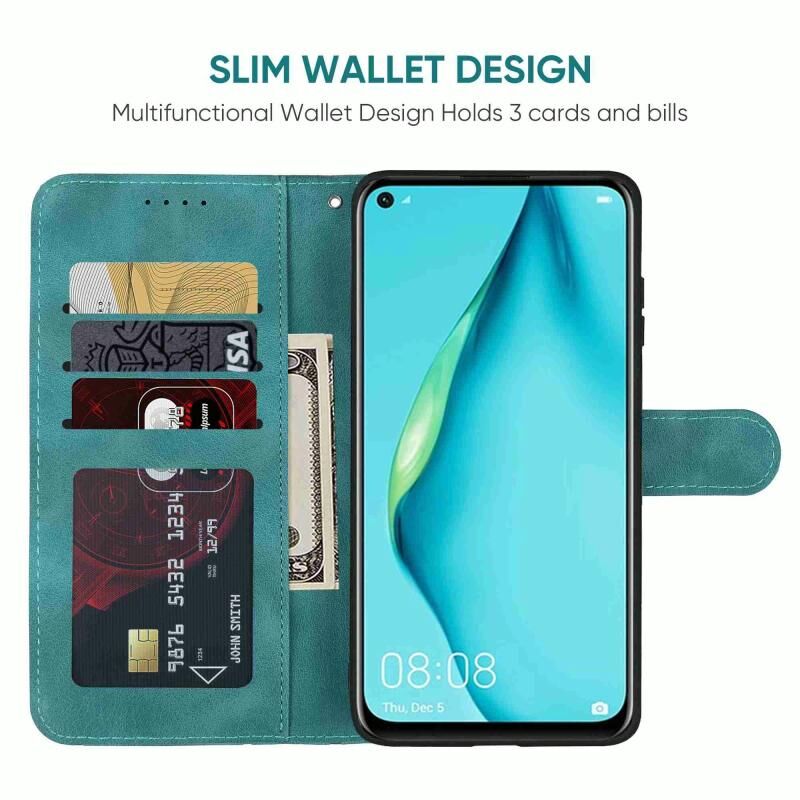 Για το Huawei P40 Lite δέρμα αίσθηση γεωμετρικές γραμμές δερμάτινη θήκη τηλεφώνου (πράσινο)