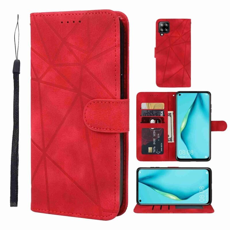Για Huawei P40 Lite δέρμα αίσθηση γεωμετρικές γραμμές δέρμα τηλέφωνο υπόθεση (κόκκινο)