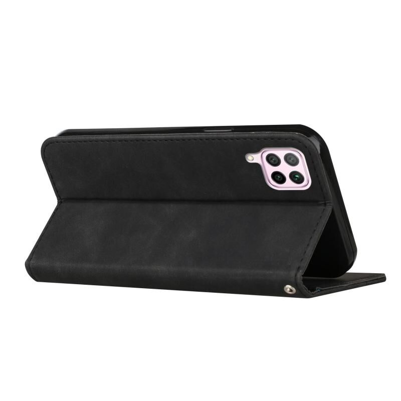 Για το Huawei P40 lite Skin Feel Magnetic S-type Solid Color Horizontal Flip Δερμάτινη θήκη με κάτοχο & υποδοχή κάρτας & πορτοφόλι (Μαύρο)