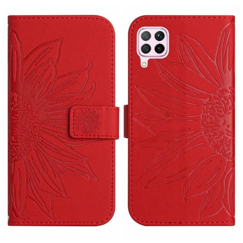 Θήκη τηλεφώνου Huawei P40 Lite με αίσθηση δέρματος, σχέδιο ηλίανθου, τύπου flip με λουρί (Σκούρο Μπλε)