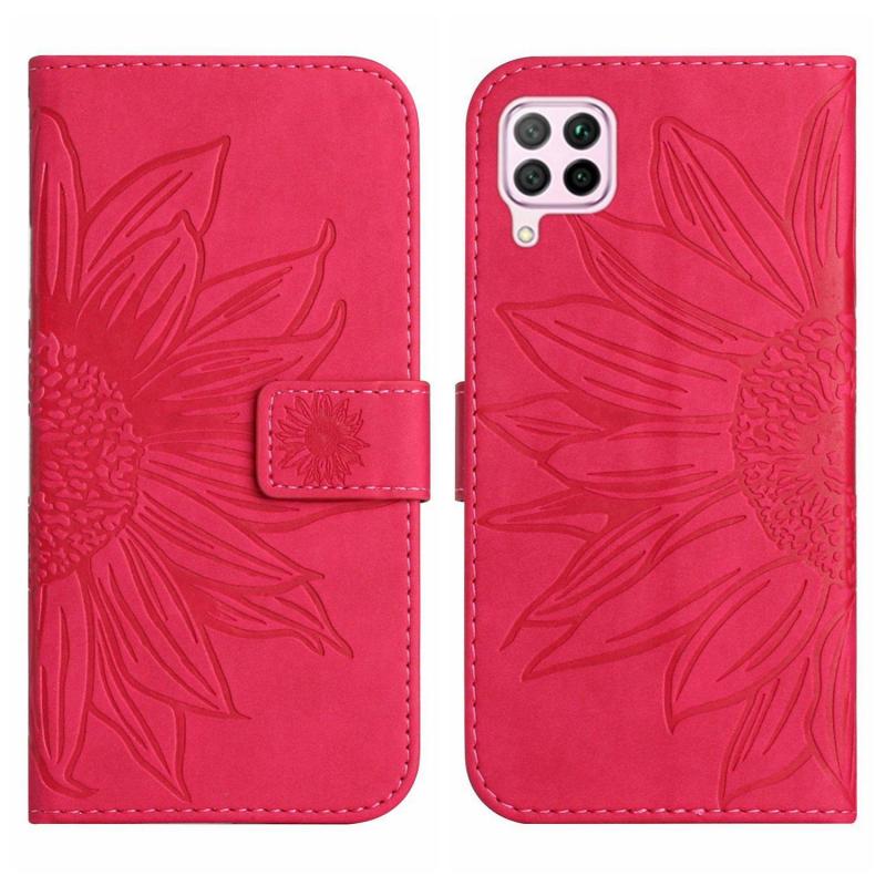 Θήκη τηλεφώνου Huawei P40 Lite με αίσθηση δέρματος, σχέδιο ηλίανθου, τύπου flip με λουρί (Σκούρο Μωβ)