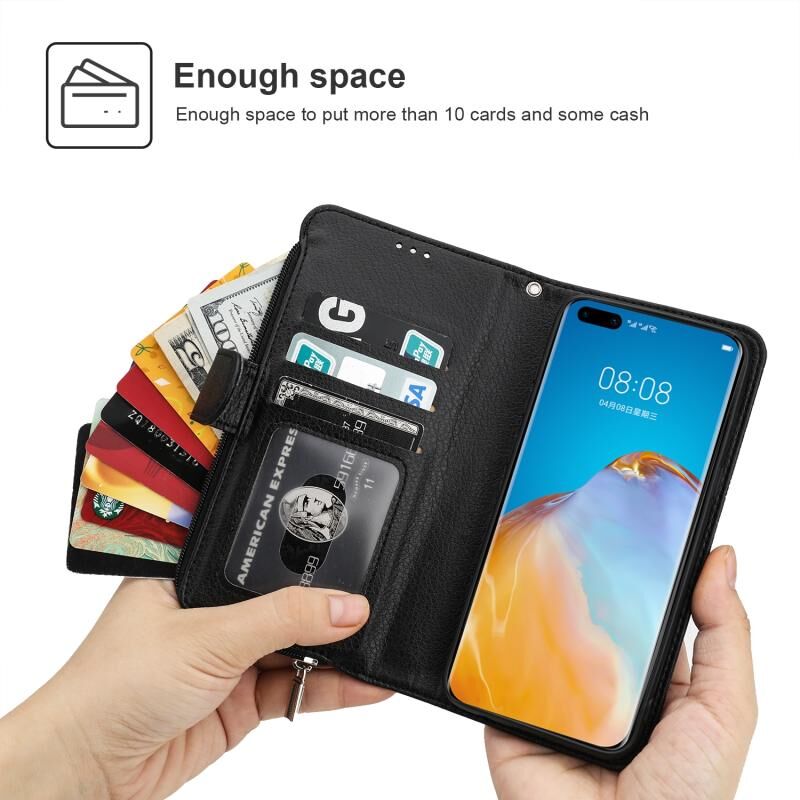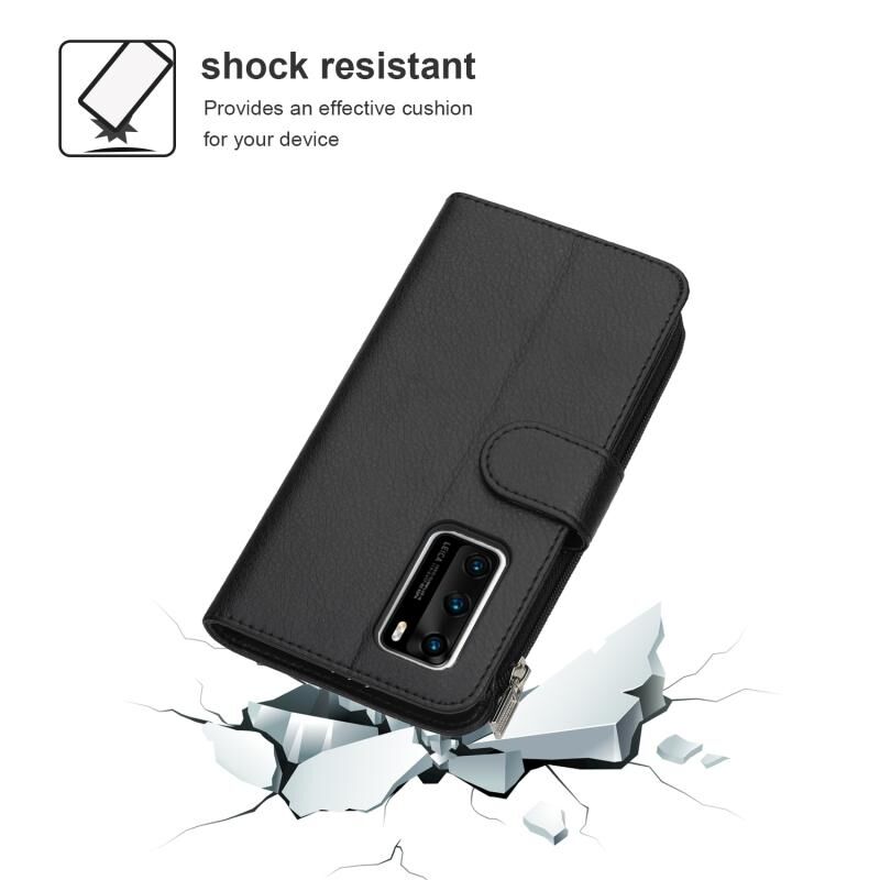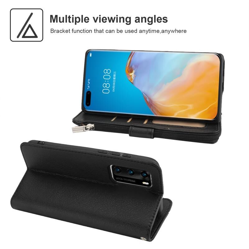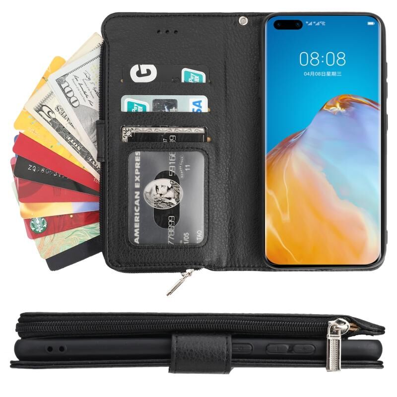Για Huawei P40 Microfiber φερμουάρ οριζόντια Flip δερμάτινη θήκη (μαύρο)