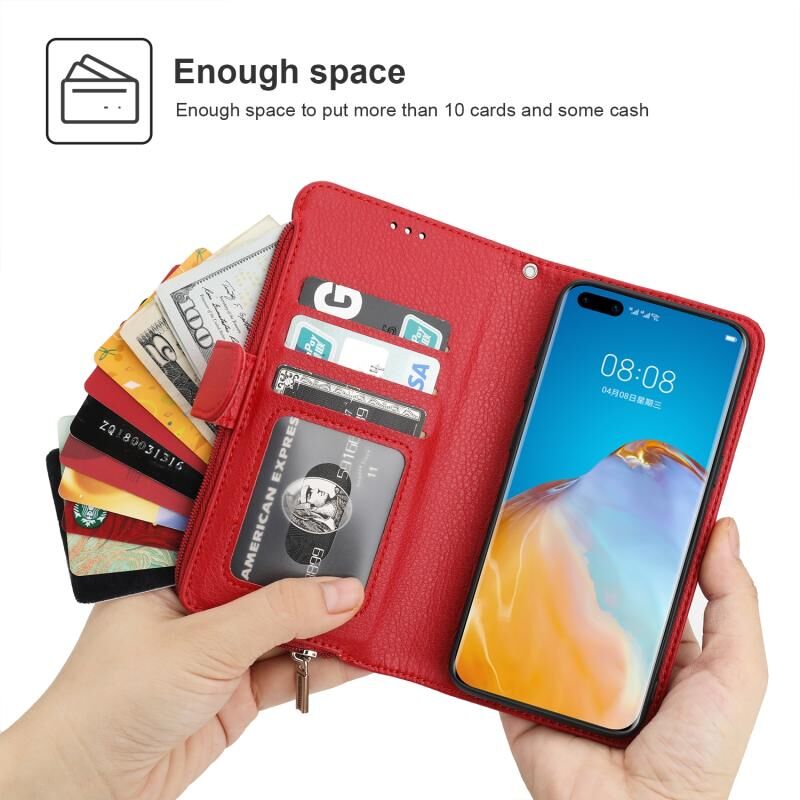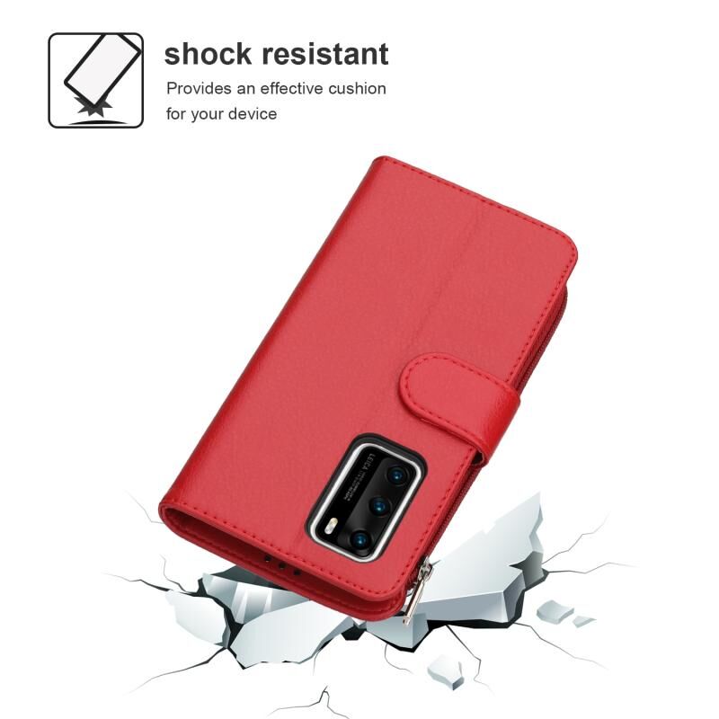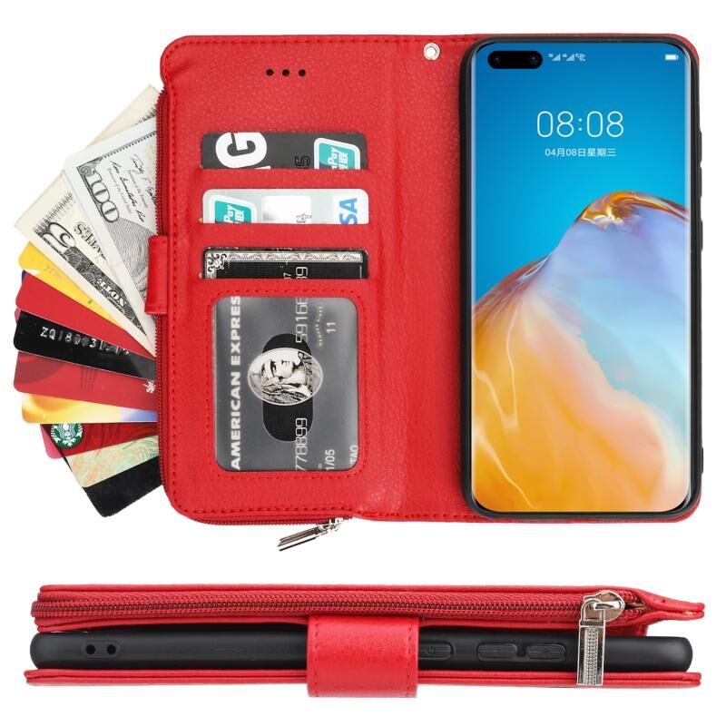 Για Huawei P40 Microfiber φερμουάρ οριζόντια Flip δερμάτινη θήκη (κόκκινο)