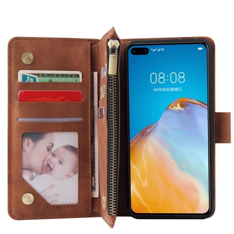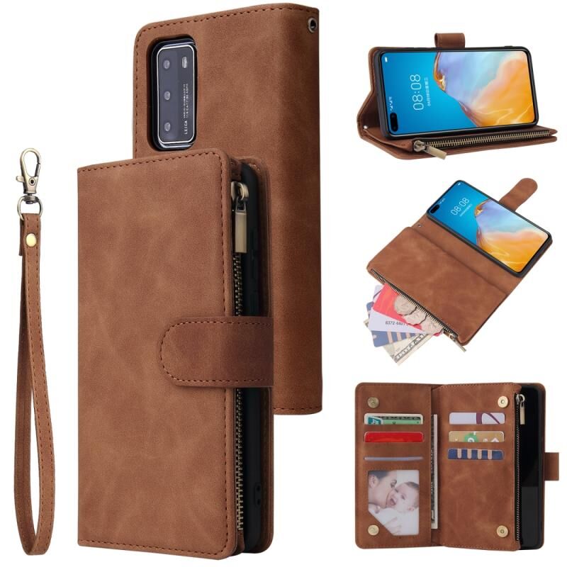 Για το Huawei P40 Πολυλειτουργική οριζόντια Flip δερμάτινη θήκη, με υποδοχή για κάρτες και θήκη για φερμουάρ, πορτοφόλι με φερμουάρ και κορνίζα φωτογραφιών (καφέ)