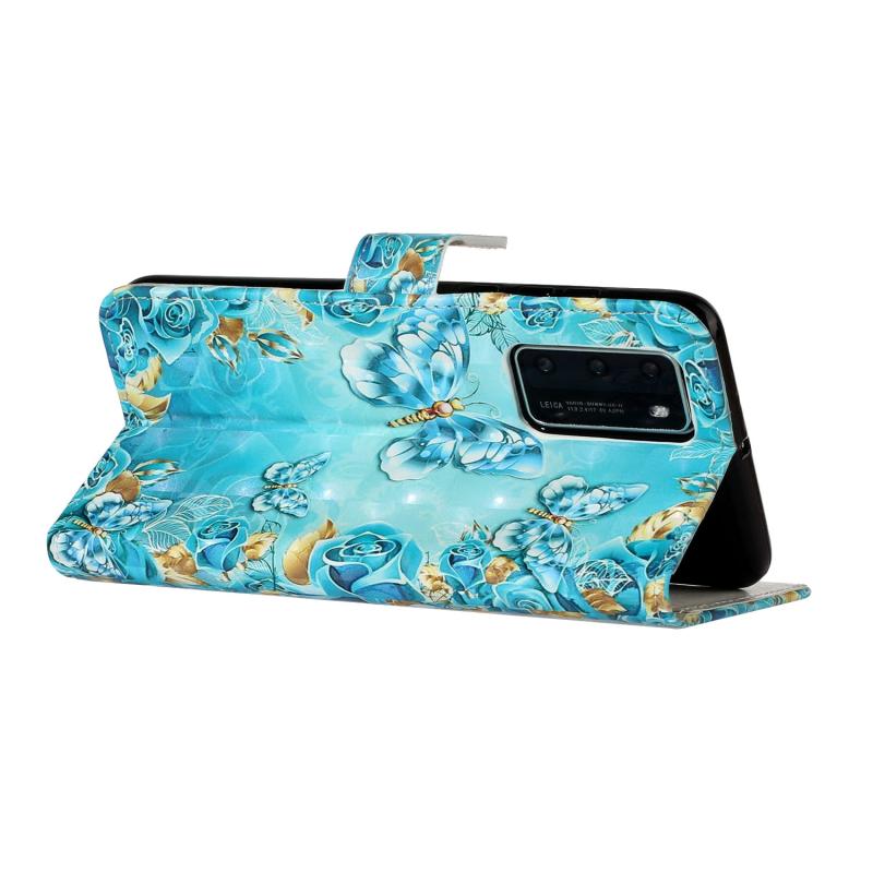 For Huawei P40 Oil Embossed 3D Drawing Leather Phone Case(Blue Butterflies)