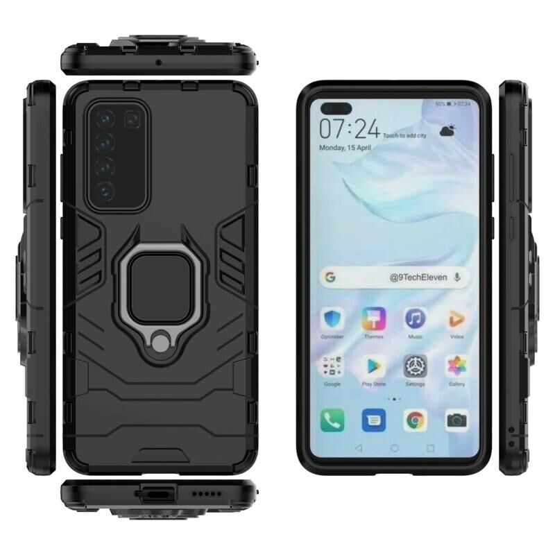 Για Huawei P40 PC + TPU Αδιάβροχη προστατευτική θήκη με μαγνητική θήκη δακτυλίου (Μαύρο)