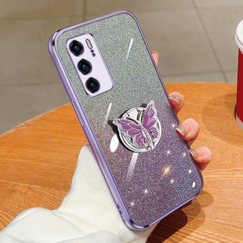 Θήκη κινητού τηλεφώνου Huawei P40 με επιμετάλλωση, διαβαθμισμένη λάμψη, σχέδιο πεταλούδας, από TPU (Μωβ)