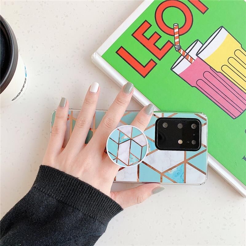 Θήκη κινητού τηλεφώνου Huawei P40 με επιμετάλλωση, πολύχρωμο γεωμετρικό σχέδιο, μωσαϊκό, μαρμάρινη TPU με αναδιπλούμενη βάση (Ματζέντα PS5)